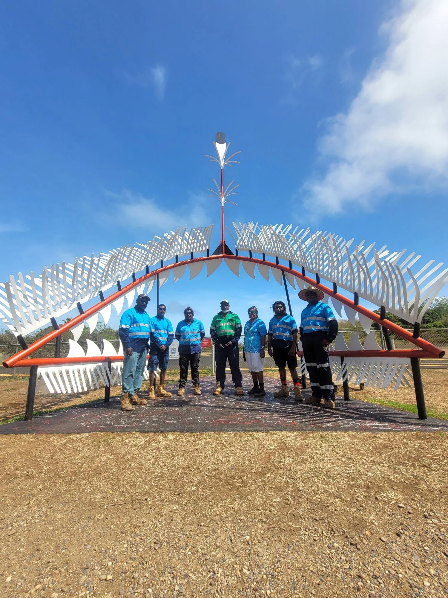 The Mer Island MGNM work crew worked with the TSIRC Engineering Team to restore the Welcome Arch, also known as the Shark Teeth Project. Members of the work crew and the engineering team participated in a week-long welding training run by RTO Civil Safety from Cairns, and all participants successfully passed the training.